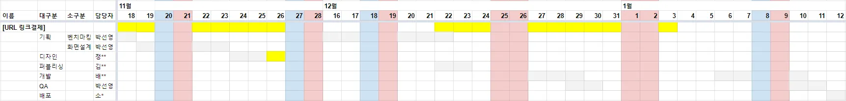 업무 구분 | 등급 | 소요일수 | 담당 여부(기여도) |
