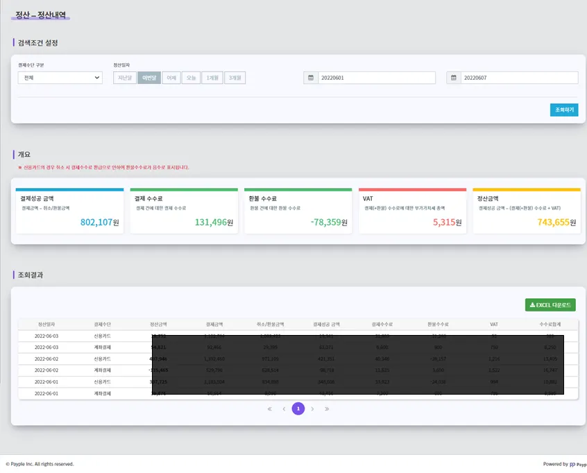 결제수단별(신용카드/계좌이체)로 구분되어 있던 정산메뉴를 1개의 메뉴로 통합